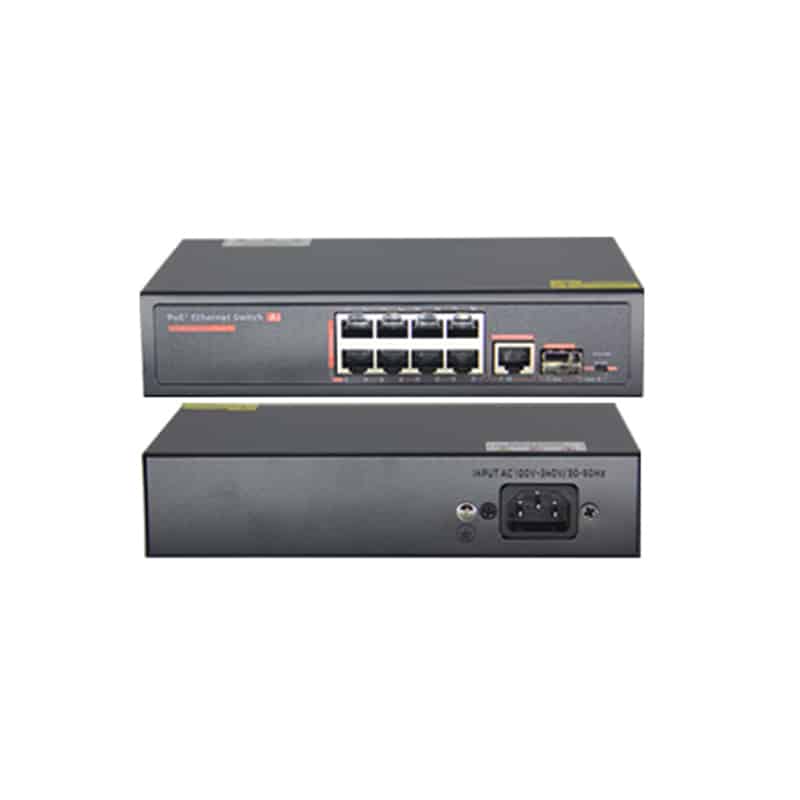 • 8 x 100 Mbps PoE RJ45 ports, 2 × 100 Mbps uplink RJ45 ports.